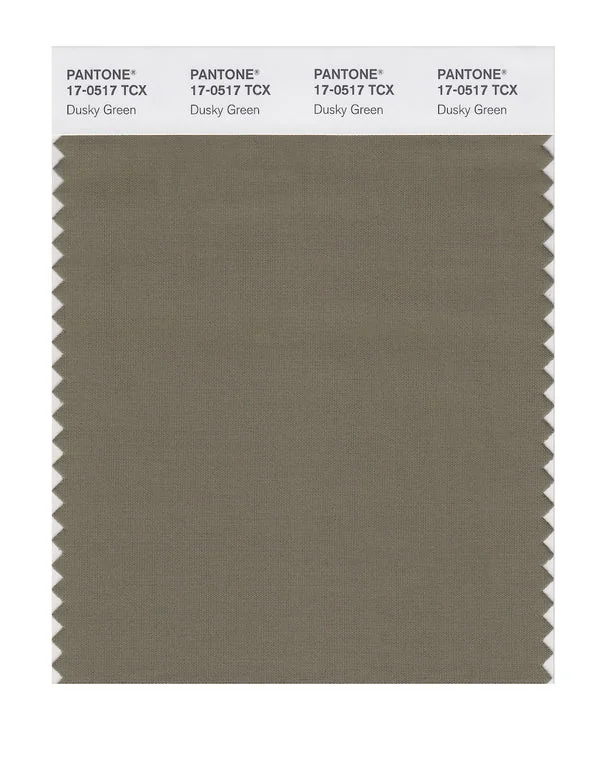 Dusky Green is a medium-toned color from the Pantone TCX collection, identified by the code 17-0517 TCX. This warm tone with its balanced character makes it an excellent choice for warm luxury, artisanal products, and natural branding.