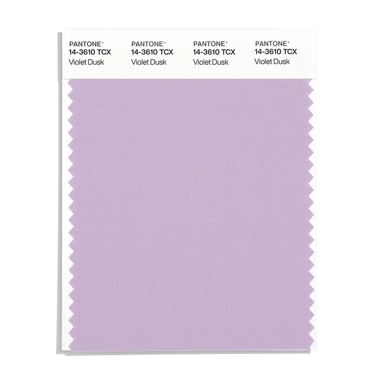 Violet Dusk is a light and airy purple from the Pantone TCX collection, identified by the code 14-3610 TCX. This cool tone with its balanced character makes it an excellent choice for creative industries, luxury branding, and artistic design.