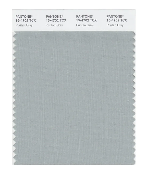 Puritan Gray is a medium-toned gray from the Pantone TCX collection, identified by the code 15-4702 TCX. This cool tone with its balanced character makes it an excellent choice for professional environments, industrial design, and neutral foundations.