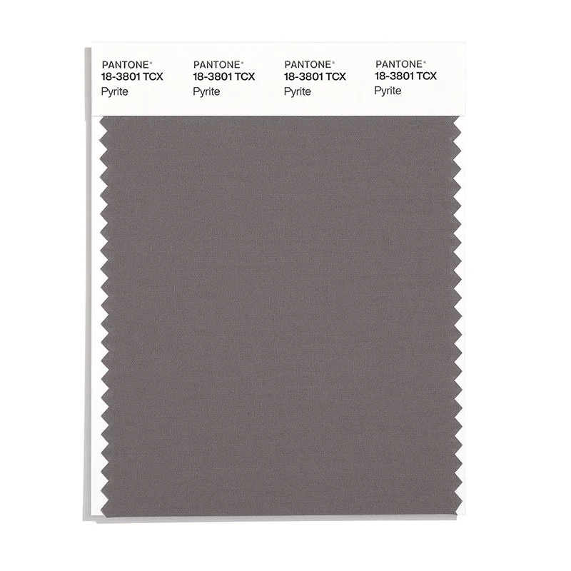 Pyrite is a medium-toned color from the Pantone TCX collection, identified by the code 18-3801 TCX. This warm tone with its balanced character makes it an excellent choice for sophisticated neutrals, urban design, and modern aesthetics.