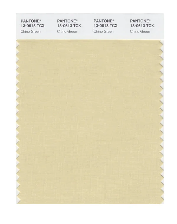Chino Green is a light and airy color from the Pantone TCX collection, identified by the code 13-0613 TCX. This warm tone with its balanced character makes it an excellent choice for luxury branding, premium products, and elegant accents.