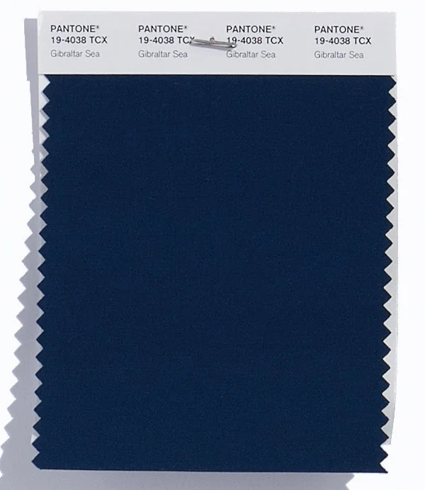 Gibraltar Sea is a deep and rich color from the Pantone TCX collection, identified by the code 19-4038 TCX. This cool tone with its balanced character makes it an excellent choice for professional services, maritime themes, and classic design.