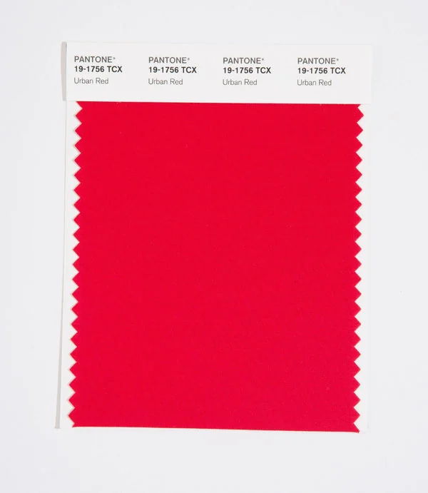 Urban Red is a medium-toned red from the Pantone TCX collection, identified by the code 19-1756 TCX. This warm tone with its vibrant and bold character makes it an excellent choice for bold branding, passionate designs, and statement pieces.