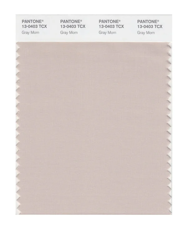 Gray Morn is a light and airy color from the Pantone TCX collection, identified by the code 13-0403 TCX. This warm tone with its balanced character makes it an excellent choice for soft femininity, wellness branding, and gentle aesthetics.