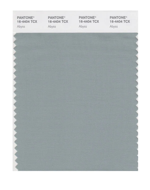 Abyss is a medium-toned color from the Pantone TCX collection, identified by the code 16-4404 TCX. This cool tone with its balanced character makes it an excellent choice for wellness branding, spa environments, and serene design.