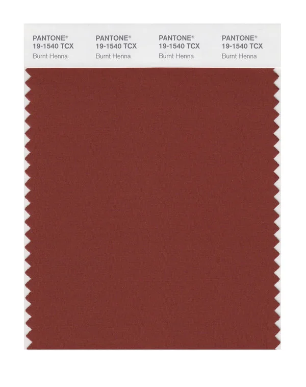 Burnt Henna is a medium-toned brown from the Pantone TCX collection, identified by the code 19-1540 TCX. This warm tone with its balanced character makes it an excellent choice for natural products, rustic design, and earthy branding.