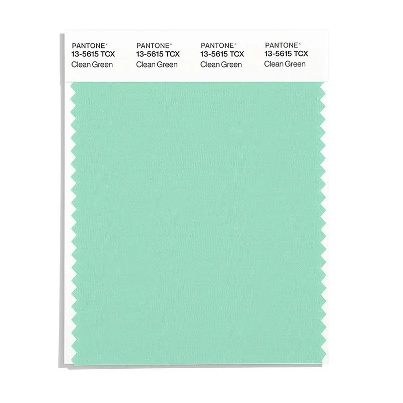 Clean Green is a light and airy color from the Pantone TCX collection, identified by the code 13-5615 TCX. This cool tone with its balanced character makes it an excellent choice for tropical themes, jewelry design, and exotic branding.