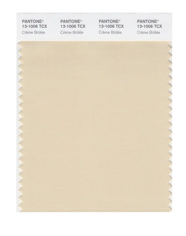 Creme Brulee is a light and airy color from the Pantone TCX collection, identified by the code 13-1006 TCX. This warm tone with its balanced character makes it an excellent choice for luxury branding, premium products, and elegant accents.