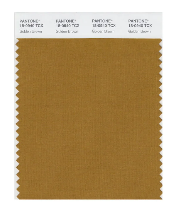 Golden Brown is a medium-toned brown from the Pantone TCX collection, identified by the code 18-0940 TCX. This warm tone with its balanced character makes it an excellent choice for natural products, rustic design, and earthy branding.
