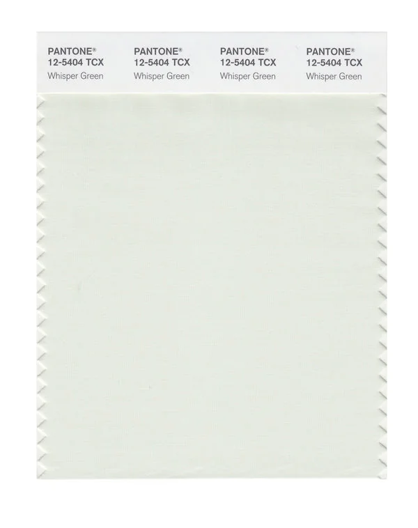 Whisper Green is a light and airy color from the Pantone TCX collection, identified by the code 12-5404 TCX. This cool tone with its soft and pastel character makes it an excellent choice for elegant neutrals, luxury textiles, and sophisticated design.