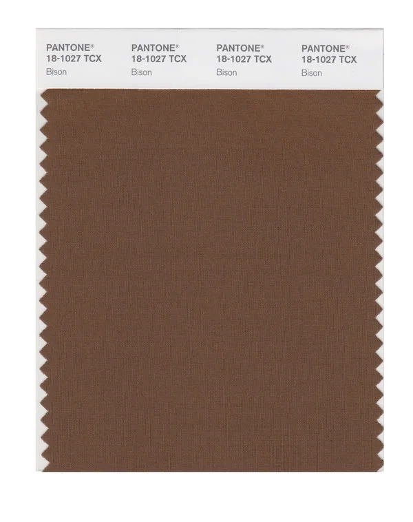 Bison is a medium-toned brown from the Pantone TCX collection, identified by the code 18-1027 TCX. This warm tone with its balanced character makes it an excellent choice for natural products, rustic design, and earthy branding.