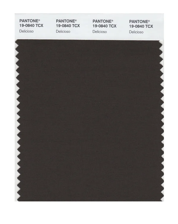 Delicioso is a deep and rich brown from the Pantone TCX collection, identified by the code 19-0840 TCX. This warm tone with its balanced character makes it an excellent choice for natural products, rustic design, and earthy branding.