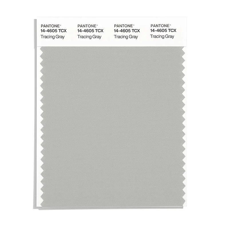 Tracing Gray is a light and airy gray from the Pantone TCX collection, identified by the code 14-4605 TCX. This warm tone with its balanced character makes it an excellent choice for professional environments, industrial design, and neutral foundations.