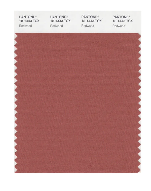 Redwood is a medium-toned color from the Pantone TCX collection, identified by the code 18-1443 TCX. This warm tone with its balanced character makes it an excellent choice for luxury fashion, dramatic interiors, and premium branding.