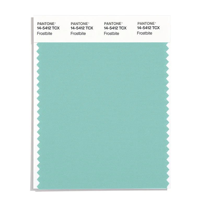Frostbite is a medium-toned color from the Pantone TCX collection, identified by the code 14-5412 TCX. This cool tone with its balanced character makes it an excellent choice for tropical themes, jewelry design, and exotic branding.