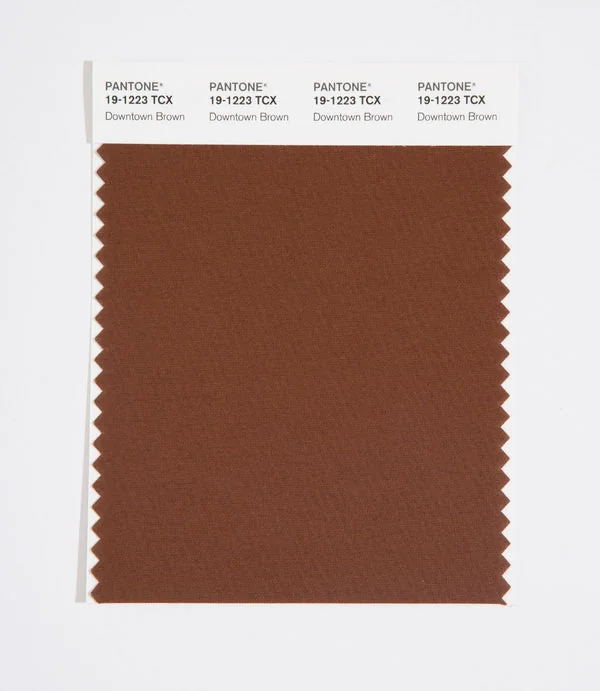 Downtown Brown is a deep and rich brown from the Pantone TCX collection, identified by the code 19-1223 TCX. This warm tone with its balanced character makes it an excellent choice for natural products, rustic design, and earthy branding.