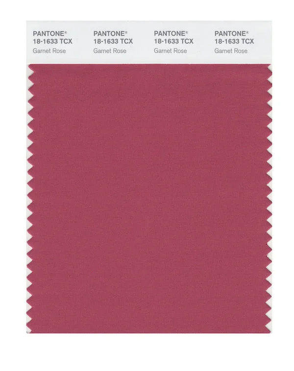 Garnet Rose is a medium-toned red from the Pantone TCX collection, identified by the code 18-1633 TCX. This warm tone with its balanced character makes it an excellent choice for bold branding, passionate designs, and statement pieces.