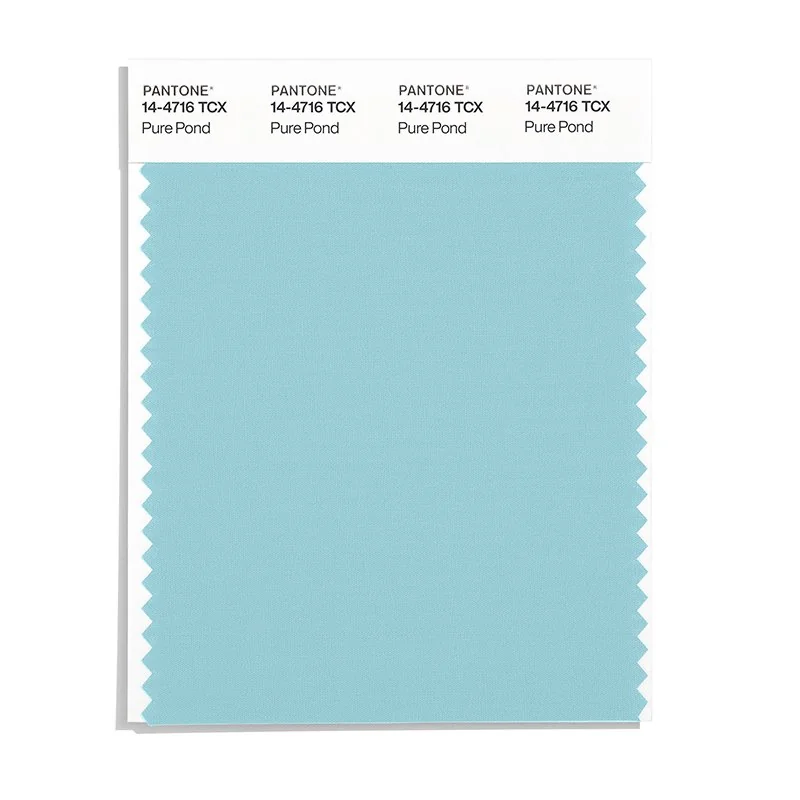 Pure Pond is a light and airy color from the Pantone TCX collection, identified by the code 14-4716 TCX. This cool tone with its balanced character makes it an excellent choice for digital branding, tech products, and modern design.