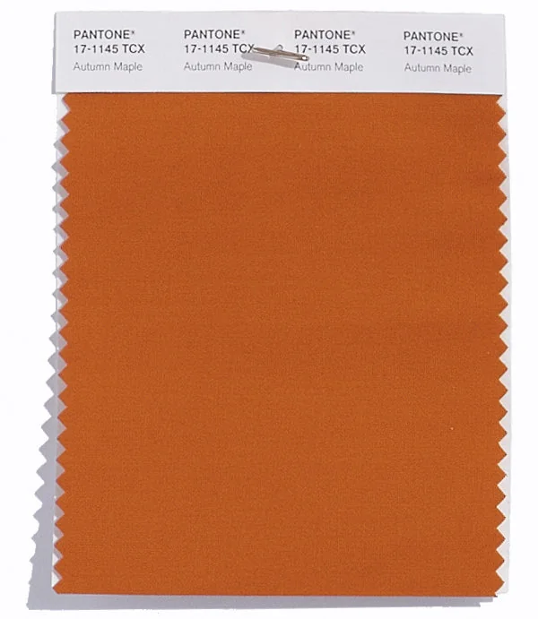Autumn Maple is a medium-toned orange from the Pantone TCX collection, identified by the code 17-1145 TCX. This warm tone with its vibrant and bold character makes it an excellent choice for energetic branding, autumn collections, and creative spaces.
