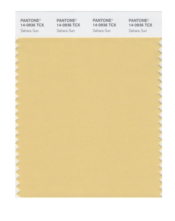 Sahara Sun is a light and airy color from the Pantone TCX collection, identified by the code 14-0936 TCX. This warm tone with its balanced character makes it an excellent choice for luxury branding, premium products, and elegant accents.