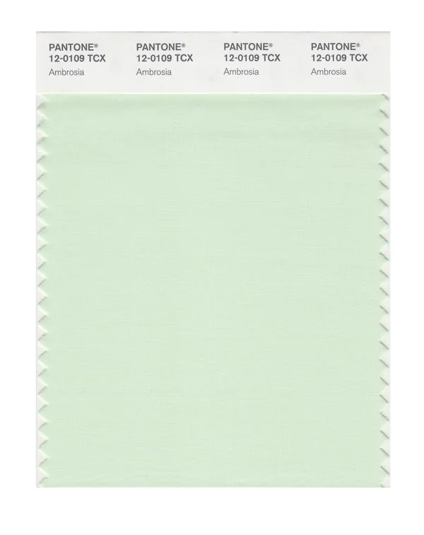Ambrosia is a light and airy green from the Pantone TCX collection, identified by the code 12-0109 TCX. This cool tone with its soft and pastel character makes it an excellent choice for sustainability, nature brands, and eco-friendly design.