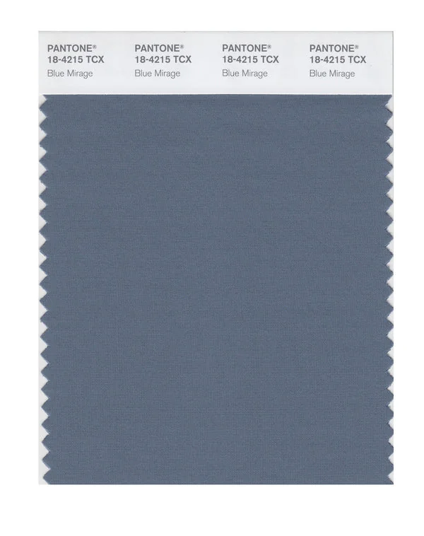 Blue Mirage is a medium-toned color from the Pantone TCX collection, identified by the code 18-4215 TCX. This cool tone with its balanced character makes it an excellent choice for industrial design, modern architecture, and tech products.