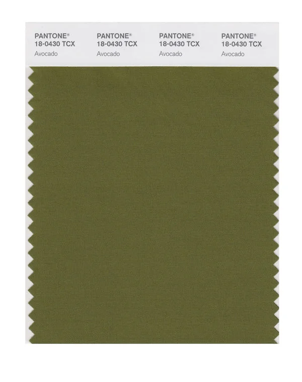 Avocado is a medium-toned color from the Pantone TCX collection, identified by the code 18-0430 TCX. This warm tone with its balanced character makes it an excellent choice for natural products, military themes, and earthy design.