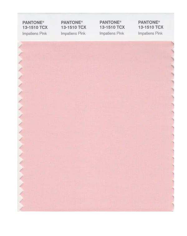 Impatiens Pink is a light and airy color from the Pantone TCX collection, identified by the code 13-1510 TCX. This warm tone with its vibrant and bold character makes it an excellent choice for baby products, gentle care, and soft branding.