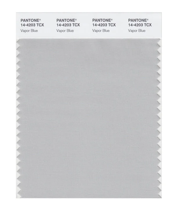 Vapor Blue is a light and airy gray from the Pantone TCX collection, identified by the code 14-4203 TCX. This warm tone with its balanced character makes it an excellent choice for professional environments, industrial design, and neutral foundations.