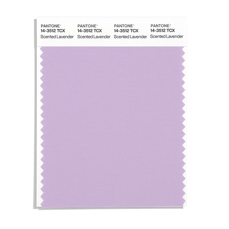 Scented Lavender is a light and airy purple from the Pantone TCX collection, identified by the code 14-3512 TCX. This cool tone with its balanced character makes it an excellent choice for creative industries, luxury branding, and artistic design.