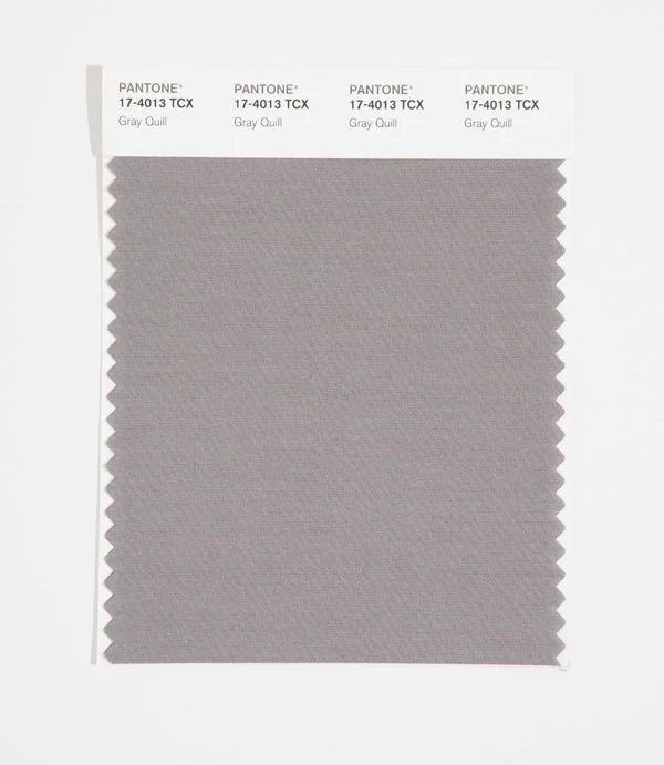 Gray Quill is a medium-toned color from the Pantone TCX collection, identified by the code 17-4013 TCX. This warm tone with its balanced character makes it an excellent choice for sophisticated neutrals, urban design, and modern aesthetics.