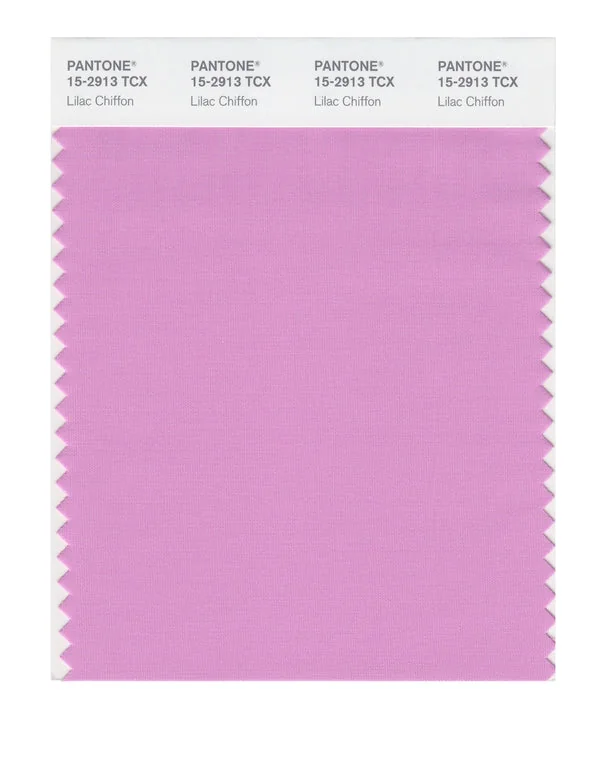 Lilac Chiffon is a light and airy color from the Pantone TCX collection, identified by the code 15-2913 TCX. This warm tone with its balanced character makes it an excellent choice for bold creativity, artistic branding, and vibrant design.