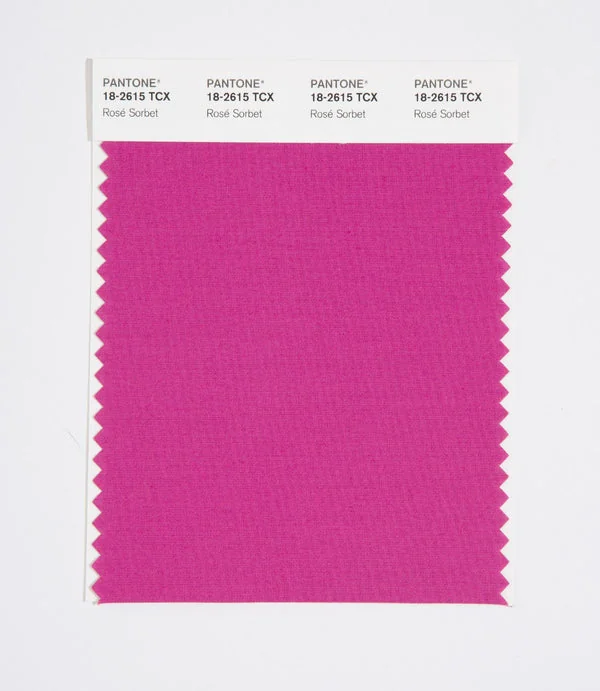 Rose Sorbet is a medium-toned color from the Pantone TCX collection, identified by the code 18-2615 TCX. This warm tone with its balanced character makes it an excellent choice for bold fashion, energetic branding, and statement design.
