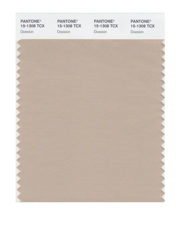 Doeskin is a medium-toned color from the Pantone TCX collection, identified by the code 15-1308 TCX. This warm tone with its balanced character makes it an excellent choice for soft femininity, wellness branding, and gentle aesthetics.