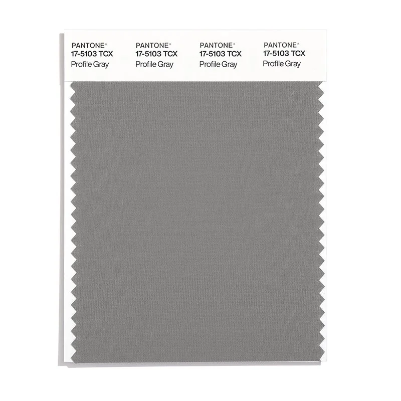 Profile Gray is a medium-toned color from the Pantone TCX collection, identified by the code 17-5103 TCX. This warm tone with its balanced character makes it an excellent choice for sophisticated neutrals, urban design, and modern aesthetics.