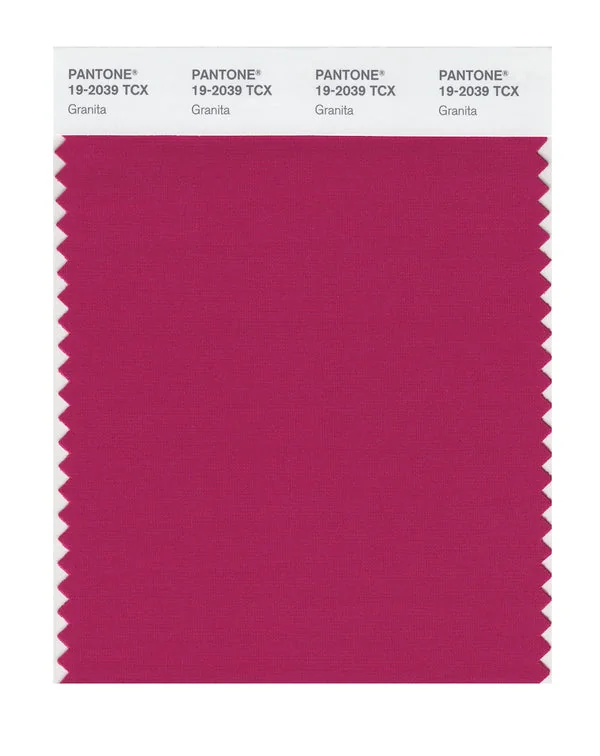 Granita is a medium-toned red from the Pantone TCX collection, identified by the code 19-2039 TCX. This warm tone with its balanced character makes it an excellent choice for bold branding, passionate designs, and statement pieces.