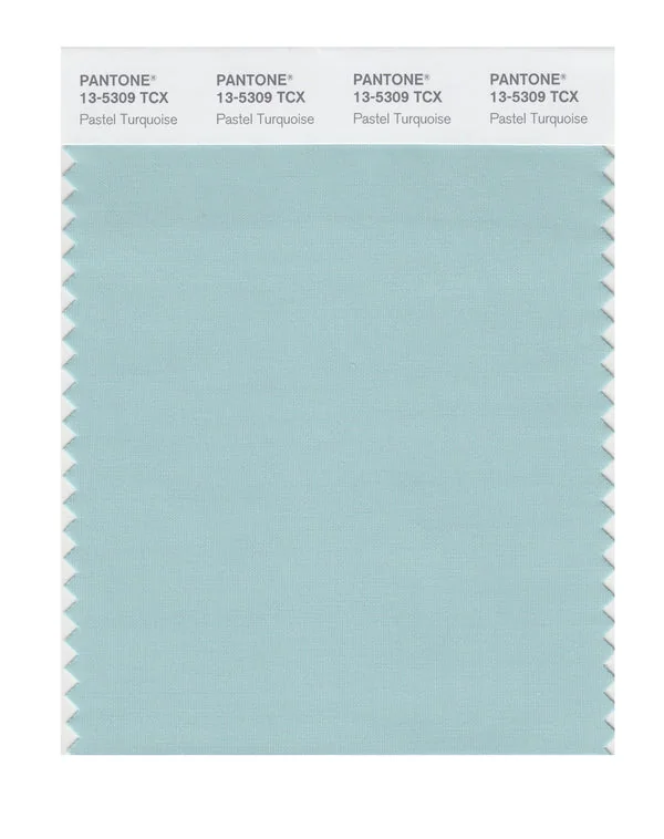 Pastel Turquoise is a medium-toned color from the Pantone TCX collection, identified by the code 13-5309 TCX. This cool tone with its balanced character makes it an excellent choice for tropical themes, jewelry design, and exotic branding.