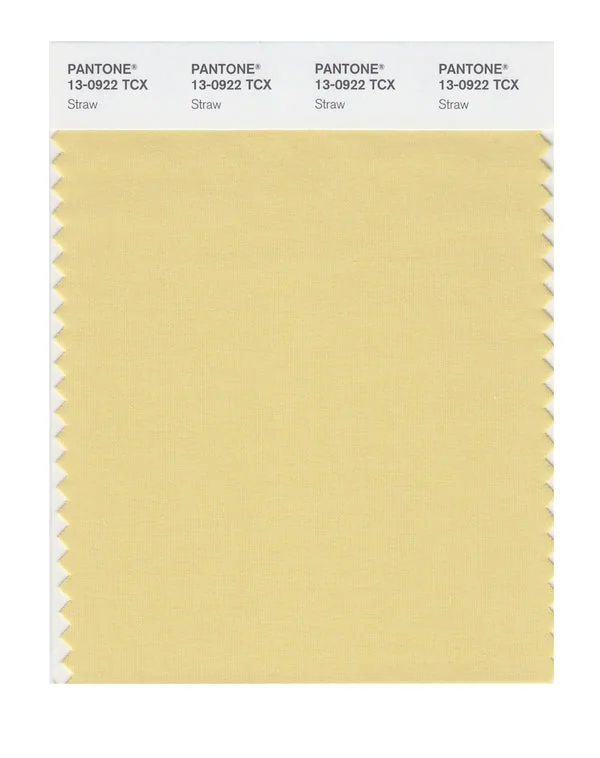 Straw is a light and airy color from the Pantone TCX collection, identified by the code 13-0922 TCX. This warm tone with its balanced character makes it an excellent choice for luxury branding, premium products, and elegant accents.