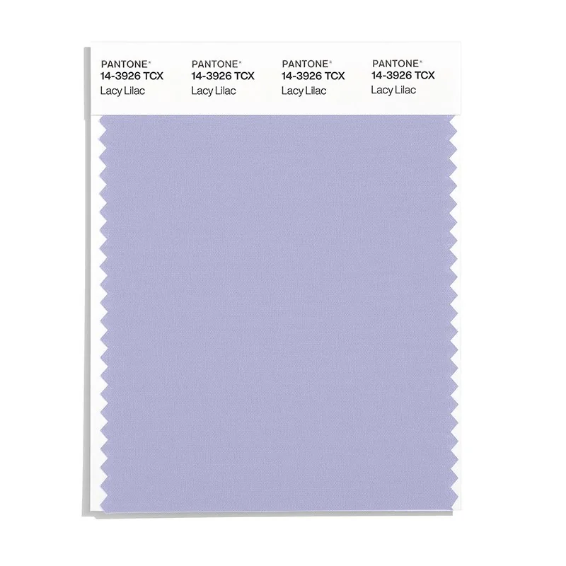 Lacy Lilac is a light and airy color from the Pantone TCX collection, identified by the code 14-3926 TCX. This cool tone with its balanced character makes it an excellent choice for soft elegance, baby products, and gentle branding.