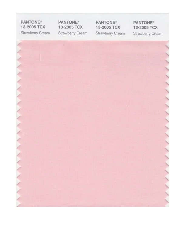 Strawberry Cream is a light and airy color from the Pantone TCX collection, identified by the code 13-2005 TCX. This warm tone with its balanced character makes it an excellent choice for baby products, gentle care, and soft branding.