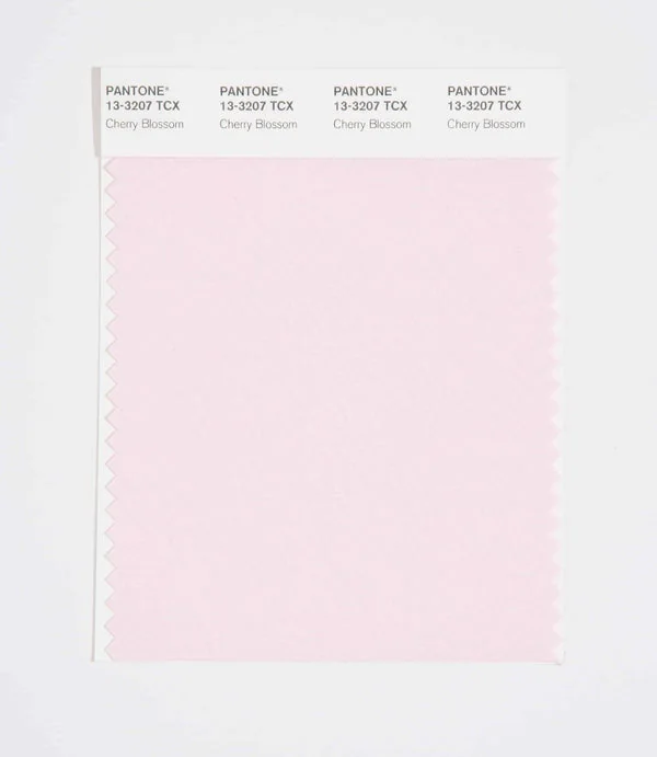 Cherry Blossom is a light and airy color from the Pantone TCX collection, identified by the code 13-3207 TCX. This warm tone with its vibrant and bold character makes it an excellent choice for baby products, gentle care, and soft branding.