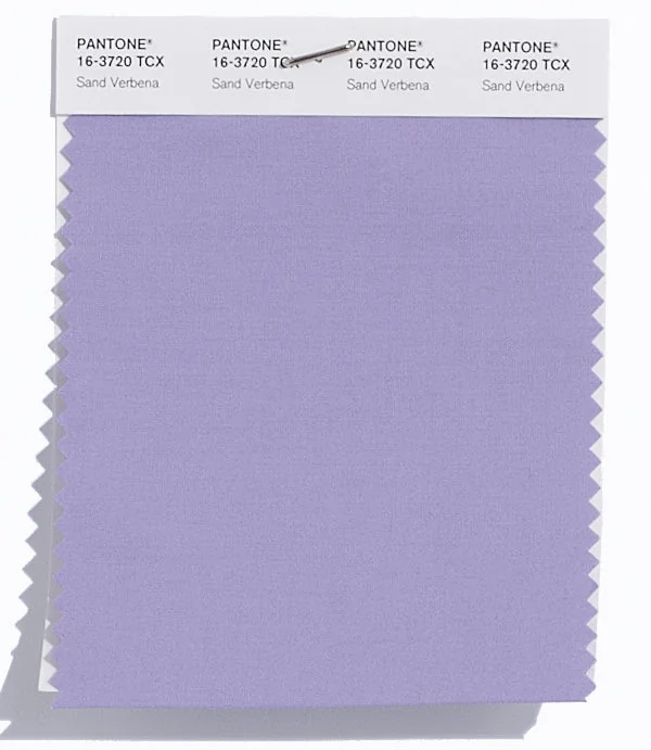 Sand Verbena is a medium-toned color from the Pantone TCX collection, identified by the code 16-3720 TCX. This cool tone with its balanced character makes it an excellent choice for soft elegance, baby products, and gentle branding.