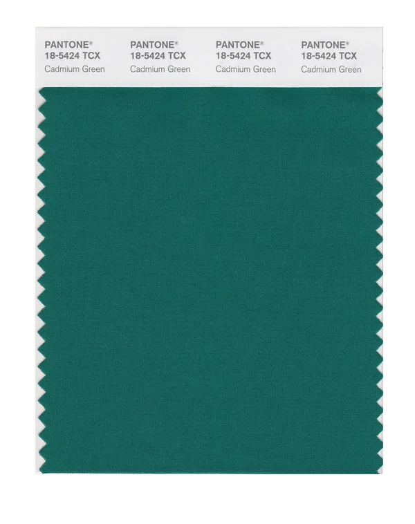 Cadmium Green is a deep and rich color from the Pantone TCX collection, identified by the code 18-5424 TCX. This cool tone with its vibrant and bold character makes it an excellent choice for sophisticated branding, medical products, and calming design.