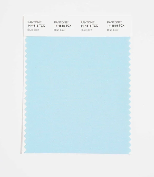 Blue Elixir is a light and airy color from the Pantone TCX collection, identified by the code 14-4515 TCX. This cool tone with its balanced character makes it an excellent choice for digital branding, tech products, and modern design.