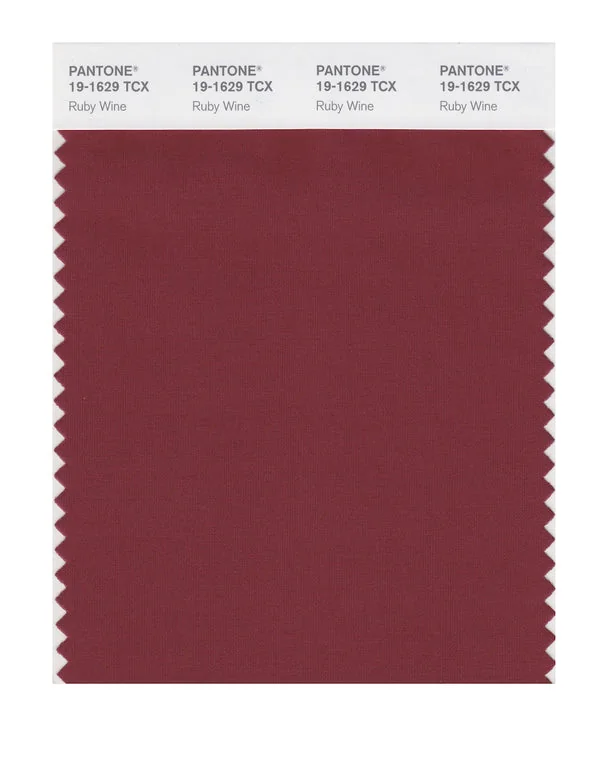 Ruby Wine is a medium-toned red from the Pantone TCX collection, identified by the code 19-1629 TCX. This warm tone with its balanced character makes it an excellent choice for bold branding, passionate designs, and statement pieces.