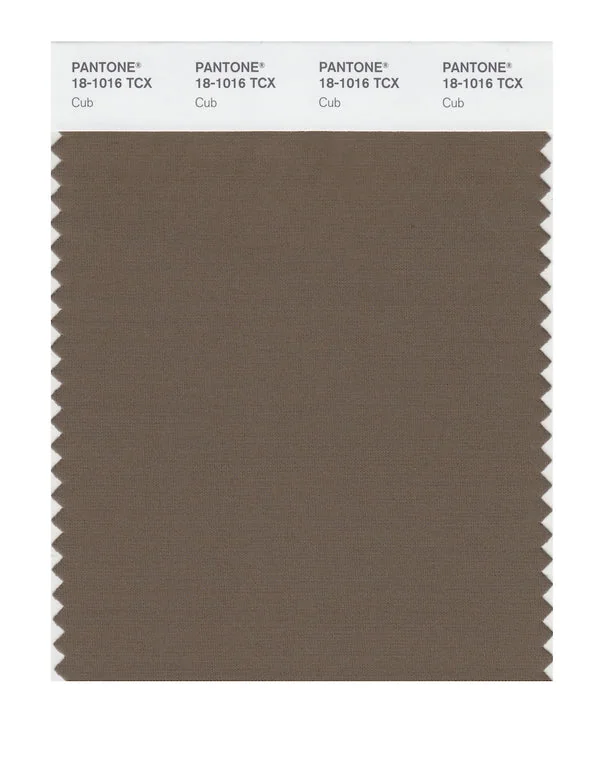 Cub is a medium-toned brown from the Pantone TCX collection, identified by the code 18-1016 TCX. This warm tone with its balanced character makes it an excellent choice for natural products, rustic design, and earthy branding.