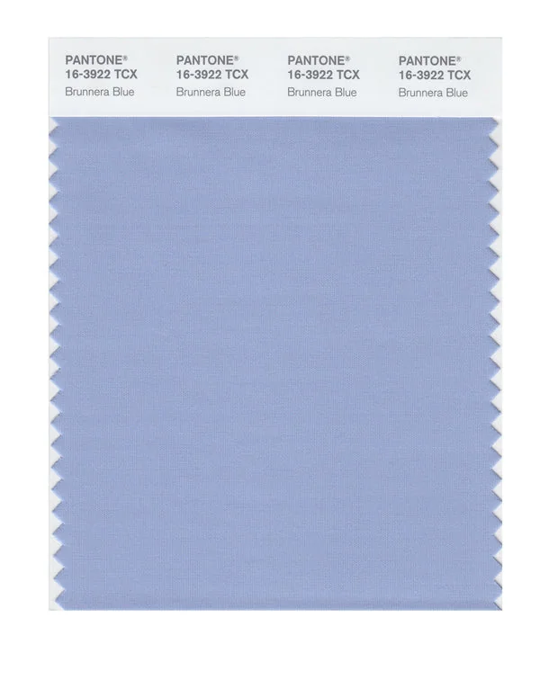 Brunnera Blue is a medium-toned blue from the Pantone TCX collection, identified by the code 16-3922 TCX. This cool tone with its balanced character makes it an excellent choice for corporate branding, healthcare, and professional design.