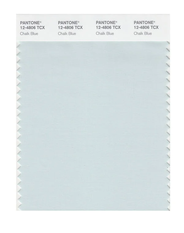 Chalk Blue is a light and airy color from the Pantone TCX collection, identified by the code 12-4806 TCX. This cool tone with its soft and pastel character makes it an excellent choice for tropical themes, jewelry design, and exotic branding.