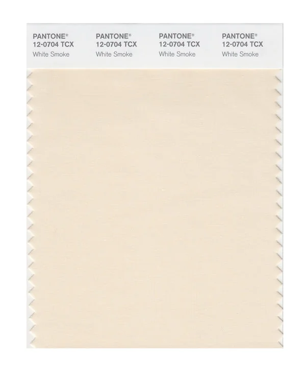 White Smoke is a light and airy color from the Pantone TCX collection, identified by the code 12-0704 TCX. This warm tone with its balanced character makes it an excellent choice for soft warmth, wellness products, and gentle branding.
