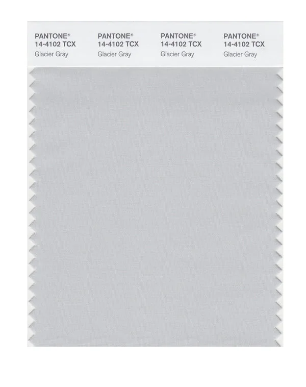 Glacier Gray is a light and airy gray from the Pantone TCX collection, identified by the code 14-4102 TCX. This cool tone with its balanced character makes it an excellent choice for professional environments, industrial design, and neutral foundations.